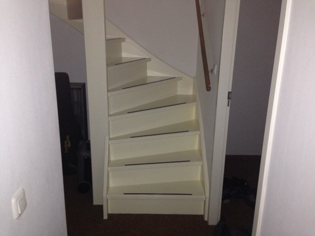 Een compleet nieuw trappenhuis, in één dag tijd! Trappen Totaal heeft deze 2 trappen in Maastricht ingemeten, op maat gemaakt en geplaatst ook hebben we hier antislip-strips ingefreesd.