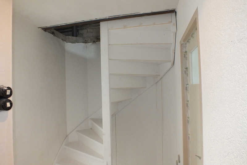 Het trapgat is gezaagd en gemaakt volgens de constructie berekeningen welke gekoppeld waren aan de bouwvergunning verstrekt door de gemeente.