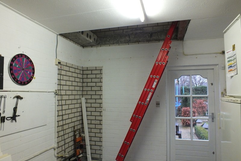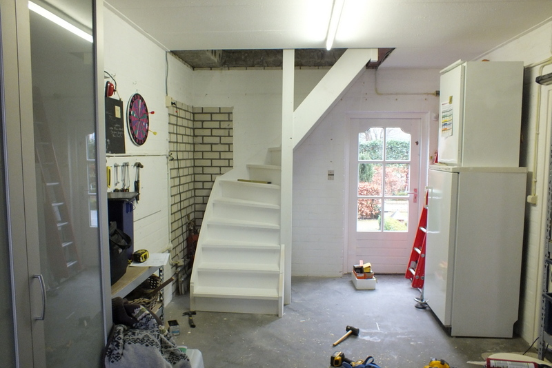 Op dit adres vonden de werkzaamheden plaats in de garage, de bedoeling was om hier op de zolder een slaapkamer te creĆ«ren, tijdens het vrijblijvend inmeten hebben we goed naar de situering van de trap moeten kijken: op de begane vloer moesten we rekening houden met de verdeler van de vloerverwarming en de deur naar de tuin en boven moesten we rekening houden met het schuine dak zodat je voldoende hoogte had met het betreden van de “nieuwe” slaapkamerruimte.