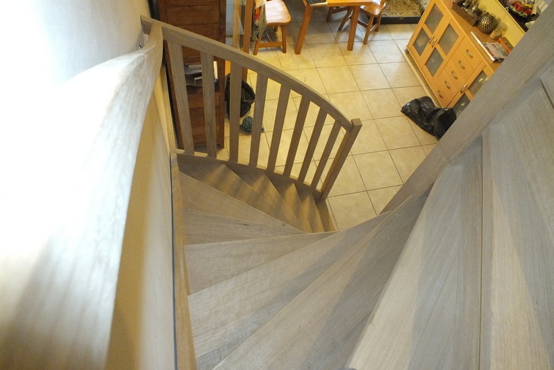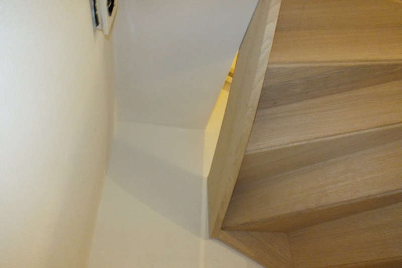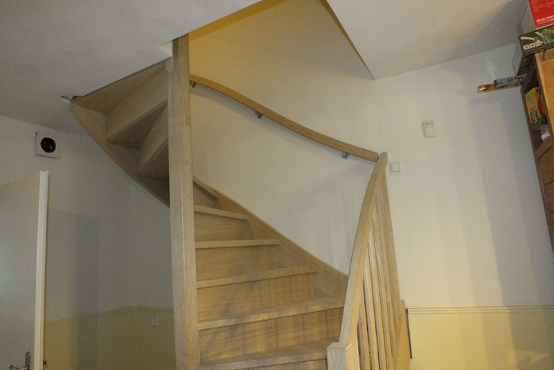 Omdat deze mensen een vrij rustieke inrichting hadden/hebben was voor hen de keuze van de houtsoort gevallen op Fraké, dit is een hardhoutsoort dat zich kenmerkt door een zeer robuust en rustiek uiterlijk, verder zit er desondanks bijna geen spanning op deze houtsoort dus dit leent zich perfect voor toepassingen in de trappenmakerij.