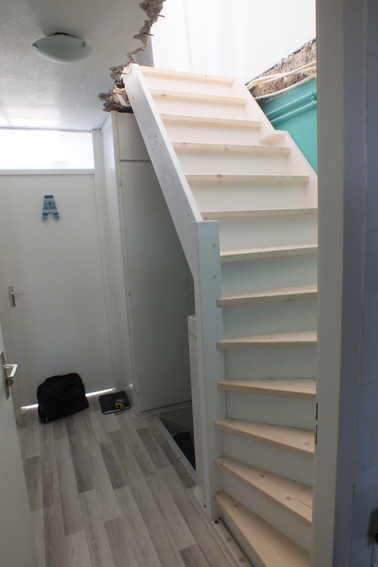 Dit Timmerbedrijf was hier bezig met een complete dakopbouw te plaatsen en heeft ons ingeschakeld om de vaste trap te plaatsen .