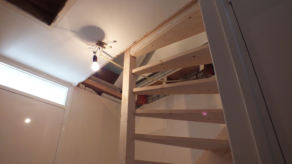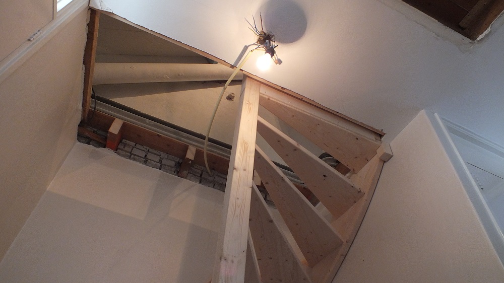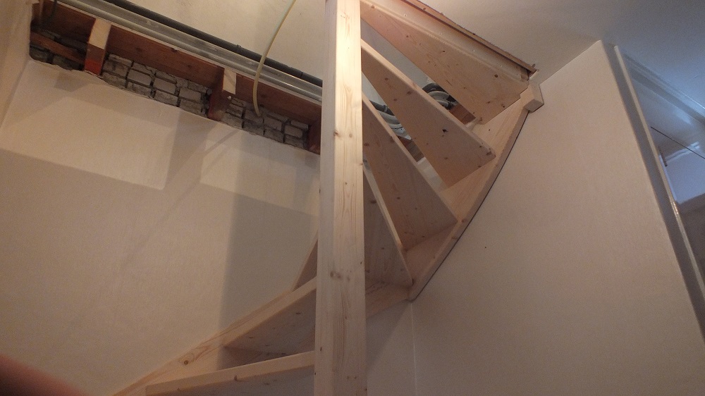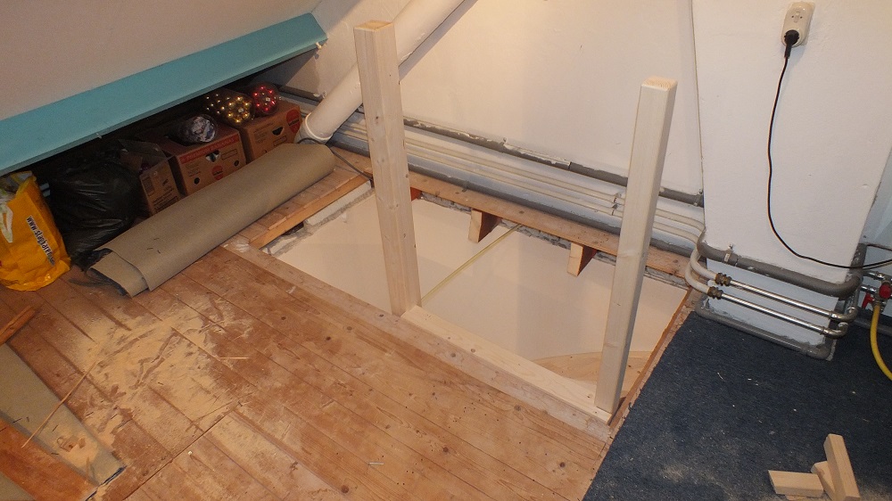 Tevens hebben we hier ook het trapgat gemaakt in de houten vloer, waarna we alles nog exact hebben nagemeten.