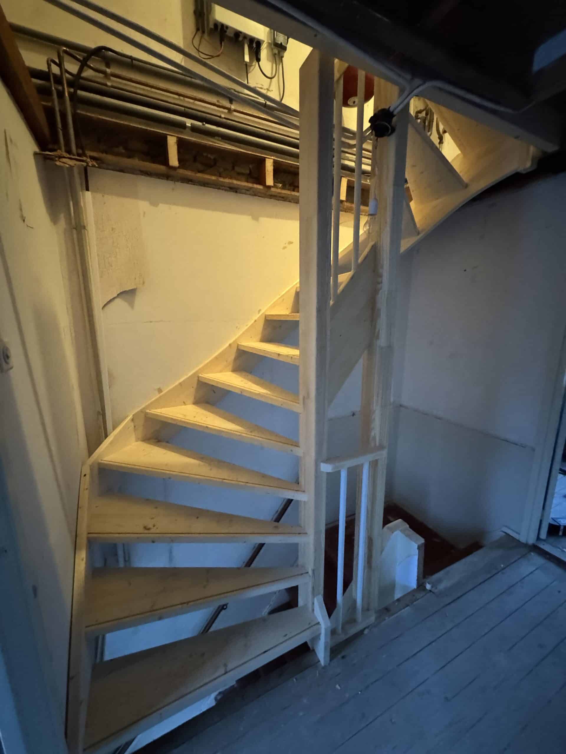 In Rotterdam hebben we een open 2-kwart trap geplaatst en een trapgat gemaakt in de houten vloer richting zolder. De open trap geeft de ruimte een lichte, moderne uitstraling en zorgt voor een comfortabele en veilige toegang. Het trapgat is strak ingepast en netjes afgewerkt, passend bij de bestaande vloer en woning.