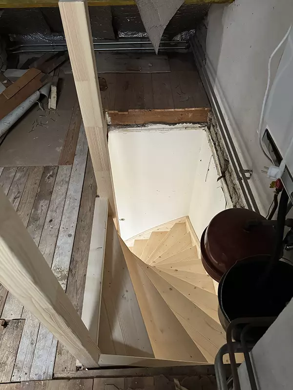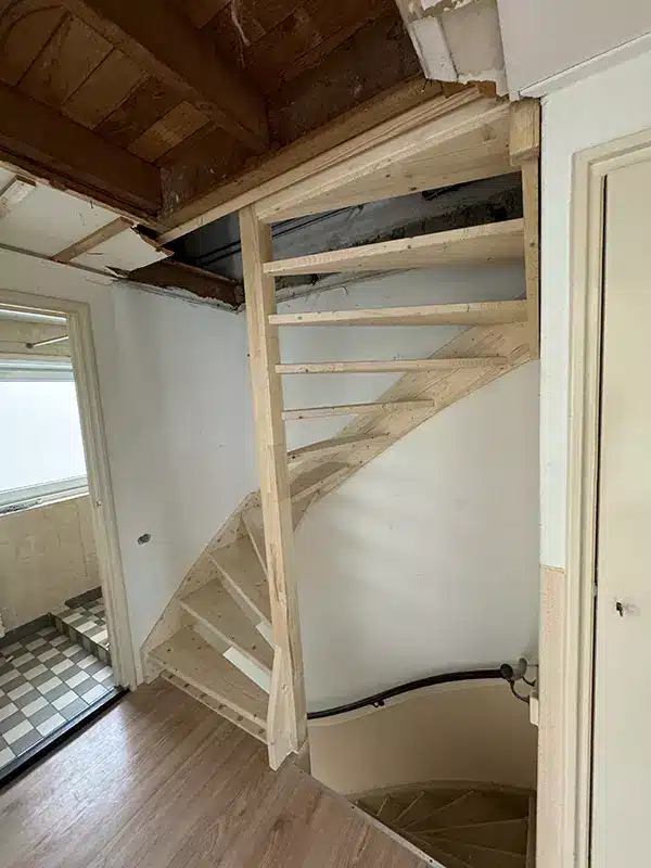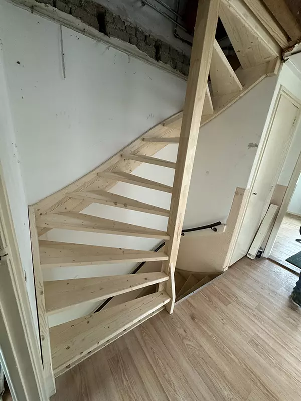 Open vurenhouten trap + trapgat gemaakt en montage in Teteringen.