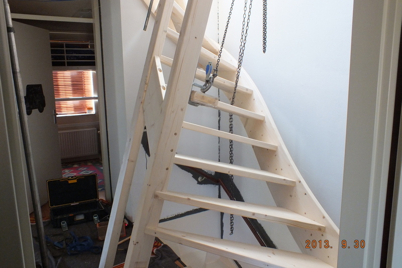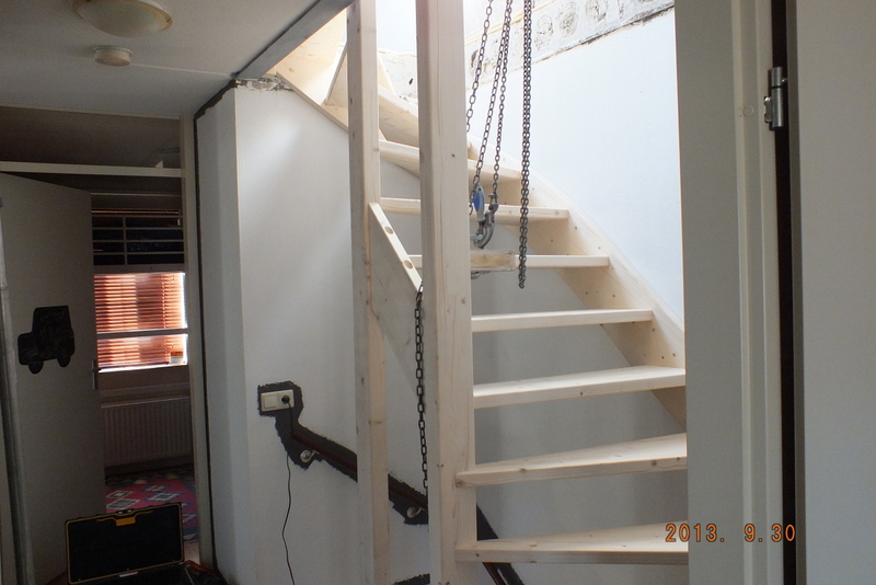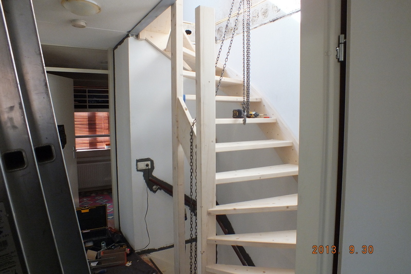 Dit werk betrof een huurwoning waar alles onder streng toezicht stond van een woningbouwcorporatie , het zagen van het trapgat is verricht door een ervaren zaagbedrijf dat al jaren voor ons de trapgaten zaagt en zelf hebben wij de trap gemaakt en geplaatst .