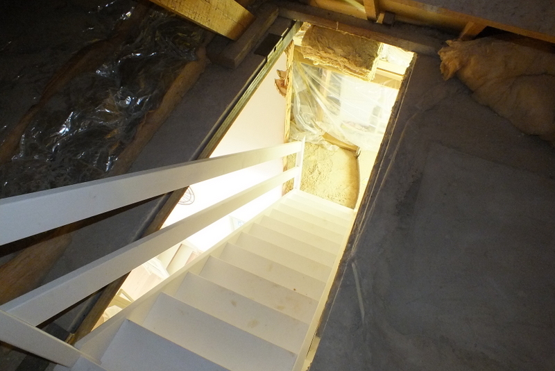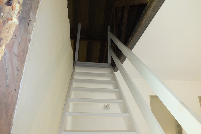 Ook moesten we bij deze rechte open steektrap in Stabroek de doorloophoogte op zolder precies berekenen. Na gedetailleerde uitwerking op kantoor was ons duidelijk dat het allemaal ging lukken, zie hier het resultaat: een prachtige ruimtelijke rechte open steektrap in Stabroek
