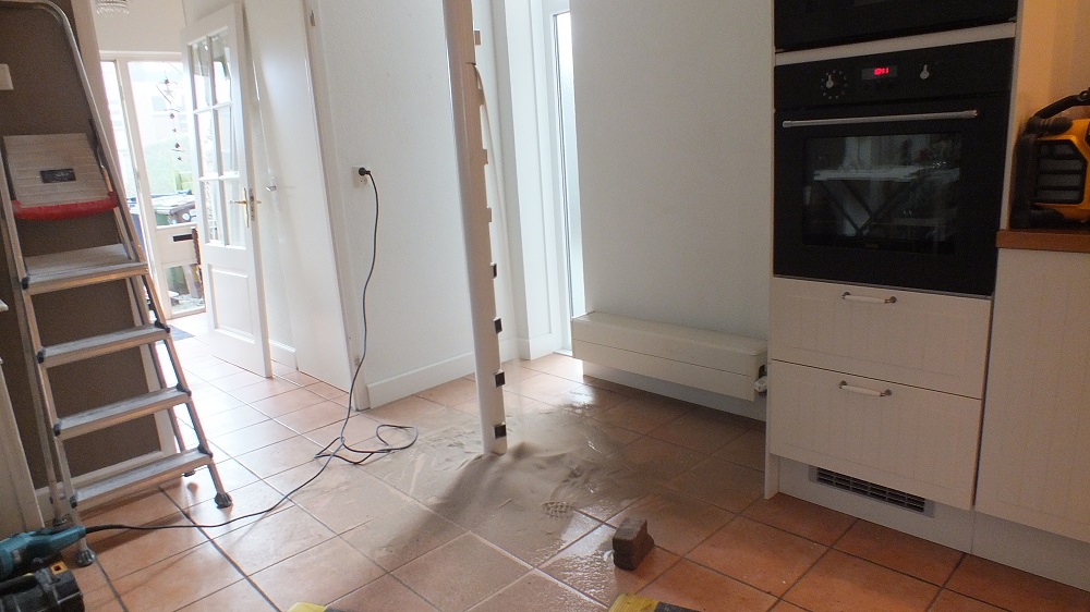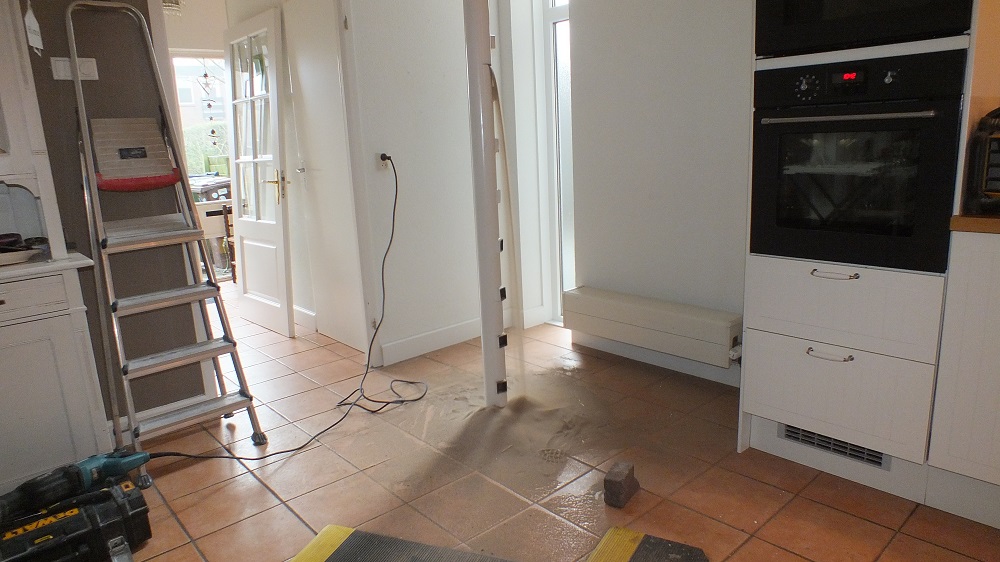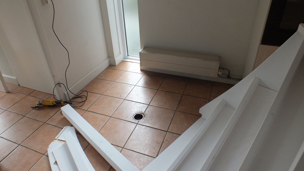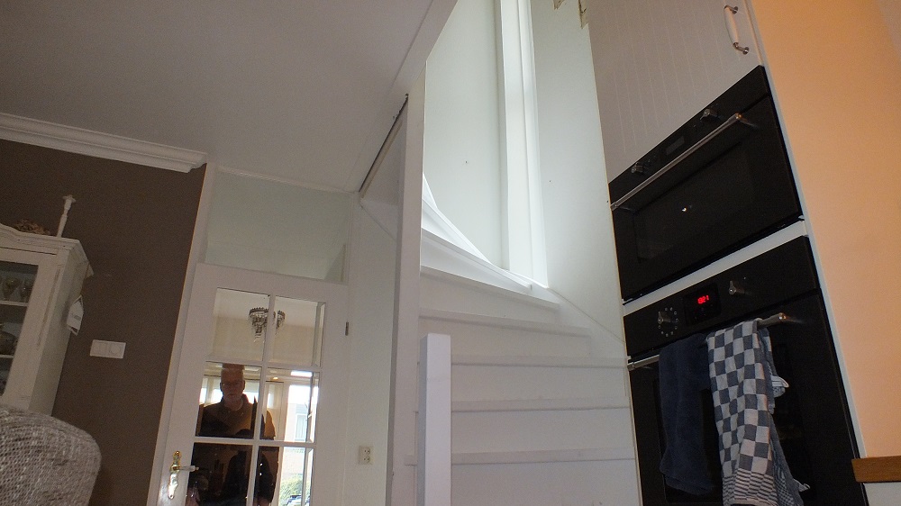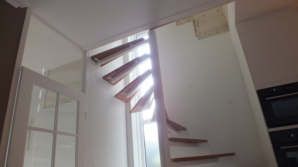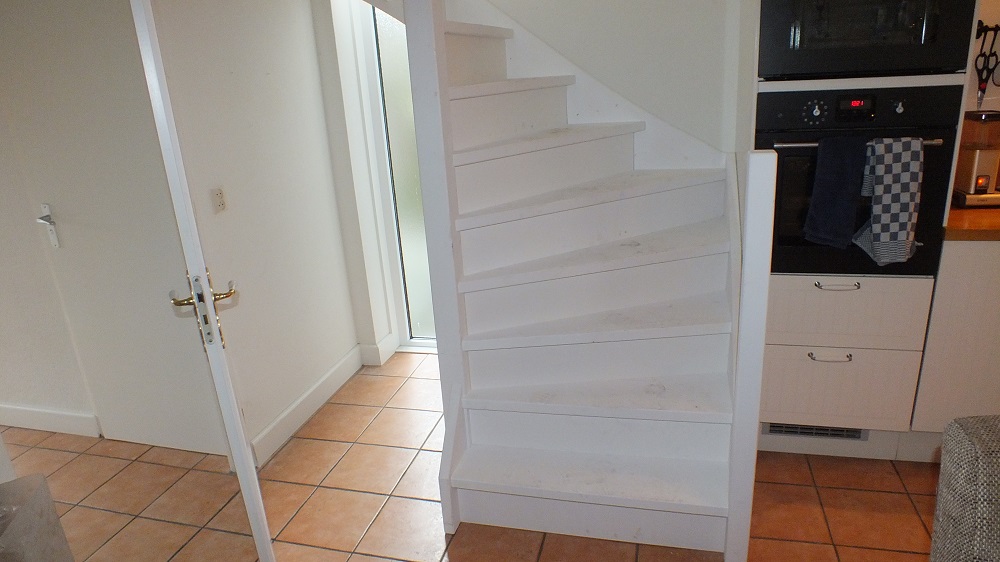 Dit was de trap van begane vloer naar de 1e verdieping, dus dit moest in één dag tijd gerealiseerd zijn.