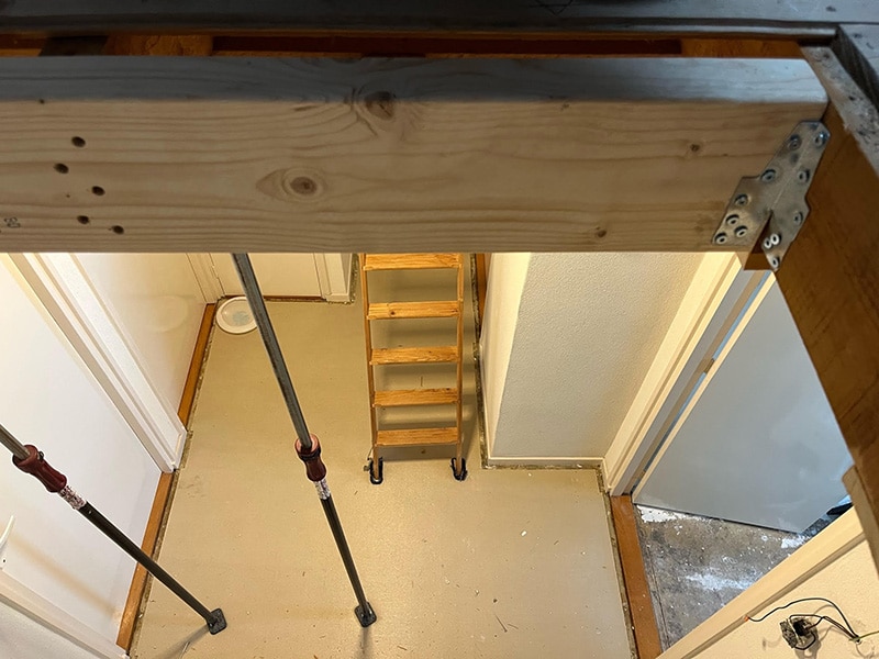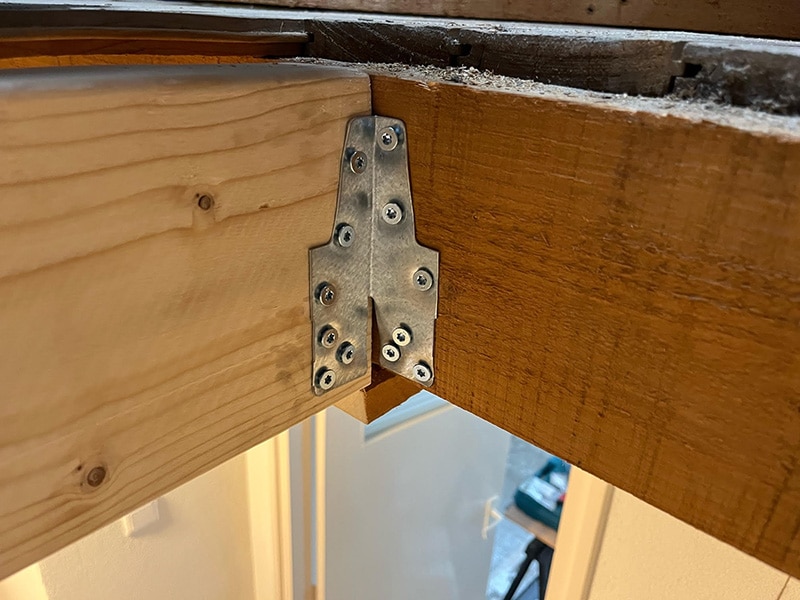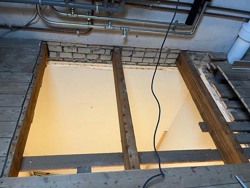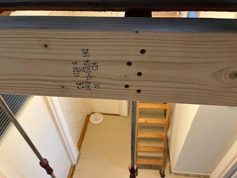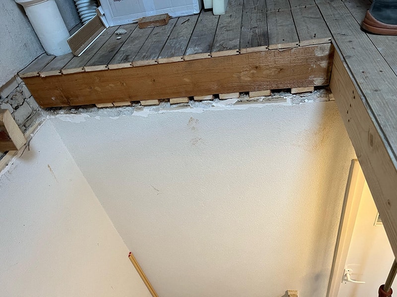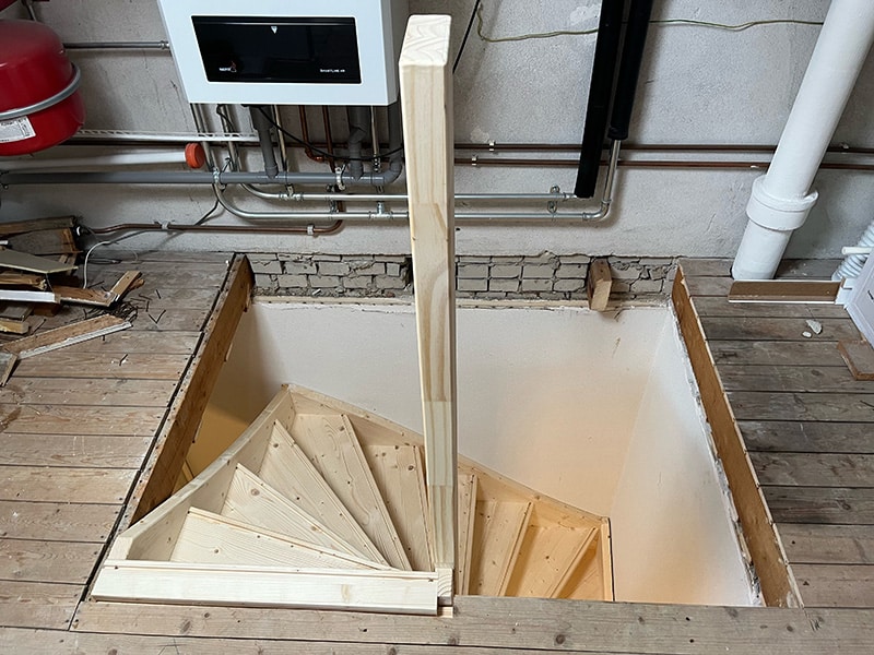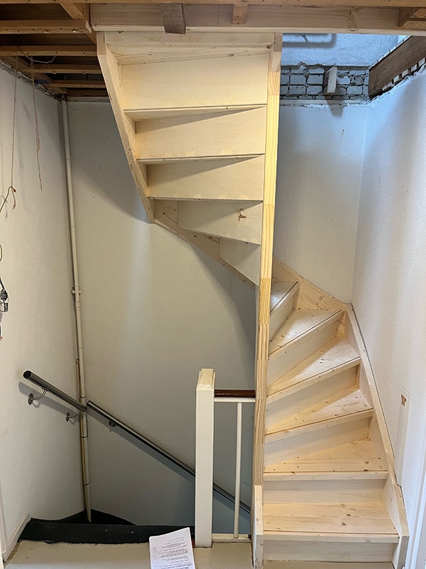 Bij deze klant hebben we rekening houdend met de doorloophoogte op zolder, een trapgat gemaakt, de vlizotrap verwijderd, dit gat weer aangeheeld, zodat dit op de zolder weer veilig beloopbaar was en een nieuwe trap, ditmaal een gesloten uitvoering, gemaakt en gemonteerd.
