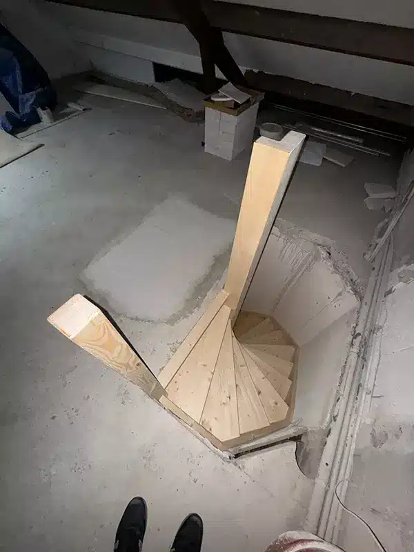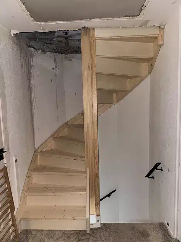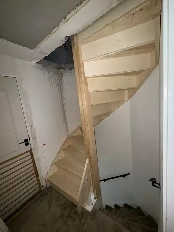Trapgat betonnen vloer + vaste trap naar zolder Volendam.