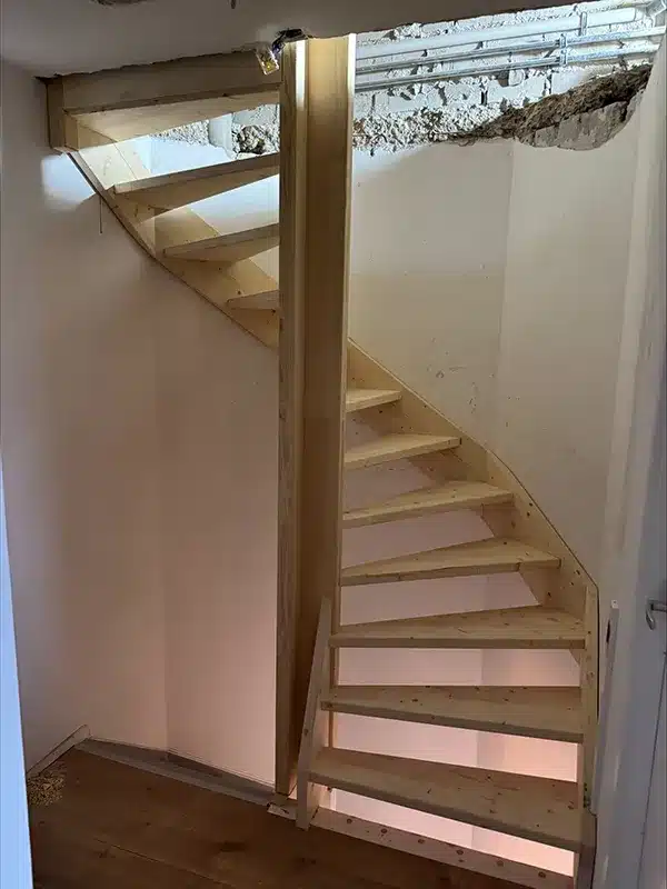 Open vaste trap 2-kwart met schuine hoeken t.b.v koof geplaatst in Middelburg
