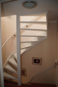 Deze vaste zoldertrap is door Trappen Totaal gemaakt en geplaatst in Bruchem , de trap is iets korter gehouden dan de begane vloer trap om zodoende onder het hoogste punt op zolder uit te komen , zodat men zonder te bukken de zolderetage kan betreden.