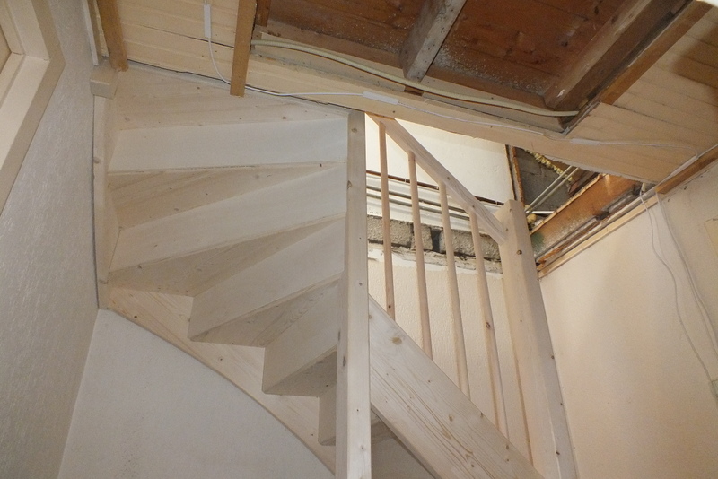 Bij deze trap naar zolder in Boxmeer heeft Trappen Totaal het complete traject verzorgd dit hield in: inmeten, trapgat maken, vlizo trap verwijderen en dit gat weer afdichten en deze halfslag trap maken en vervolgens vakkundig plaatsen/monteren.