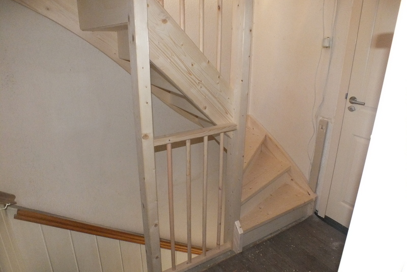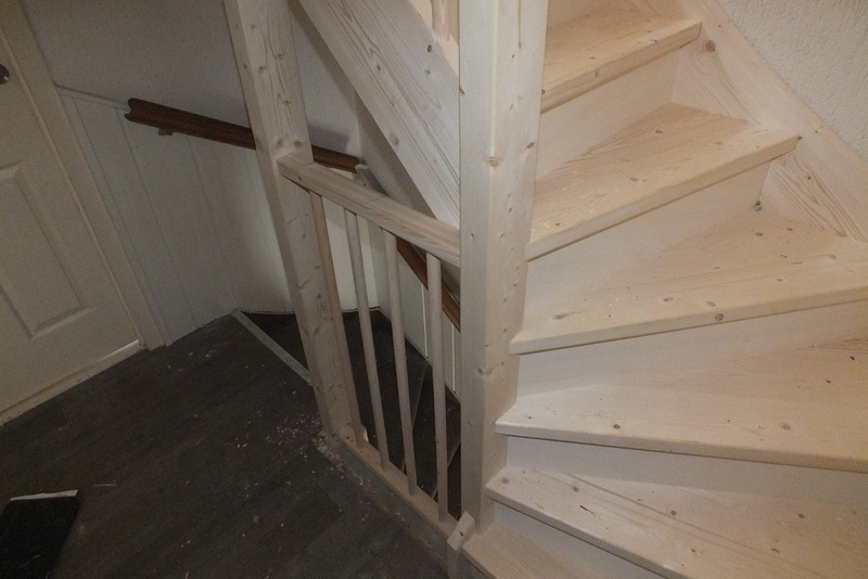 Deze vaste trap naar zolder in Boxmeer is van het type: Halfslag trap, dit houdt in dat de trap eigenlijk bestaat uit 2 kwarten met daartussen een gedeelte recht. In de trappenwereld wordt dit ook vaak voor het gemak een 2-kwarttrap genoemd, maar eigenlijk is een 2-kwarttrap een trap met 2 kwarten zonder recht gedeelte er tussen.