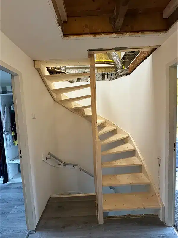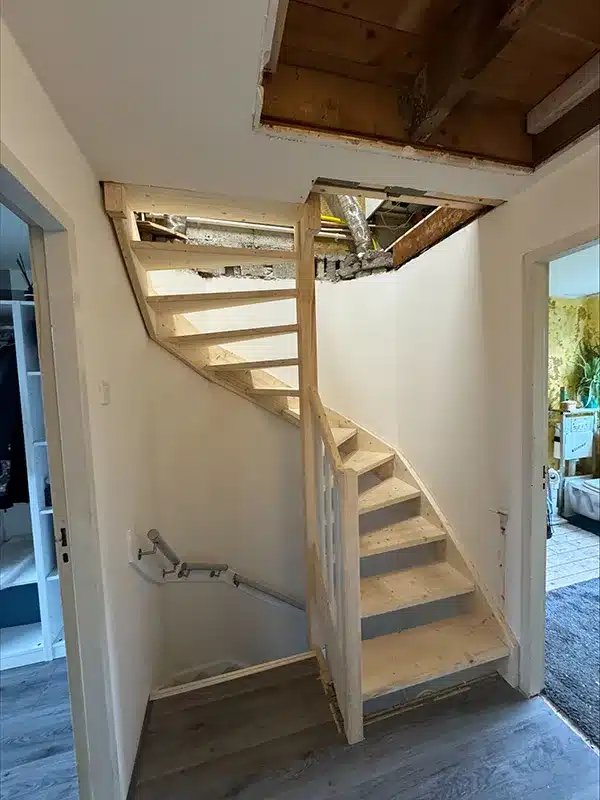Vaste trap naar zolder gerealiseerd incl. trapgat in een houten vloer in Hoogvliet