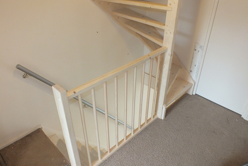 Deze vaste trap naar zolder open uitvoering in Brielle is door ons ingemeten op maat gemaakt en geplaatst, tevens hebben wij hier ook het trapgat in de houten vloer gemaakt en hekwerk op de 1e verdieping en trap hekken op de zolderverdieping geplaatst.