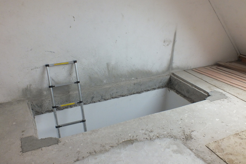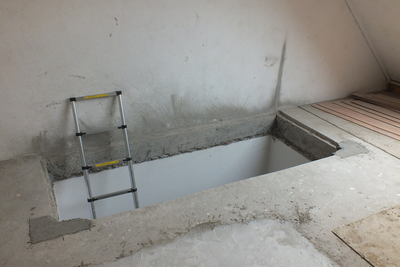 Ook moest hier een trapgat in beton gezaagd worden en dit was een behoorlijk pittige klus, deze vloer was namelijk massief zat vol met bewapening en was maar liefst 26 cm dik!