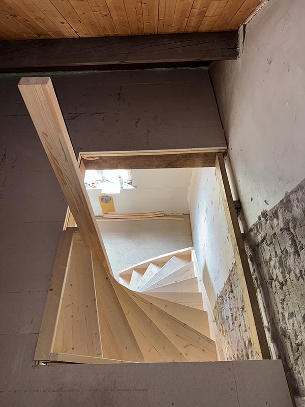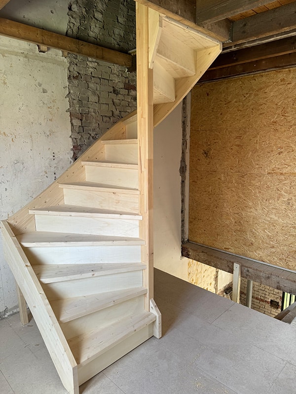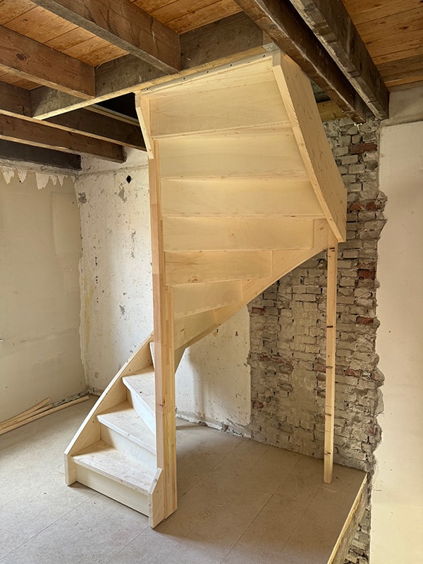 Deel 1 van dit project was de zoldertrap, zodat de klant verder kan met de verbouwing, deel 2 wordt de begane vloertrap.